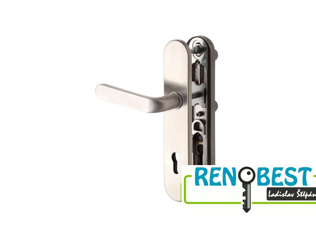 - bez cylindrické vložky a je určeno na vstupní dveře otevírané dovnitř i ven, tloušťka dveří 40 - 50 mm, dále po 10 mm až do tloušťky dveří 100 mm je nutné dokoupit prodlužovací sadu na příslušnou tloušťku dveří.