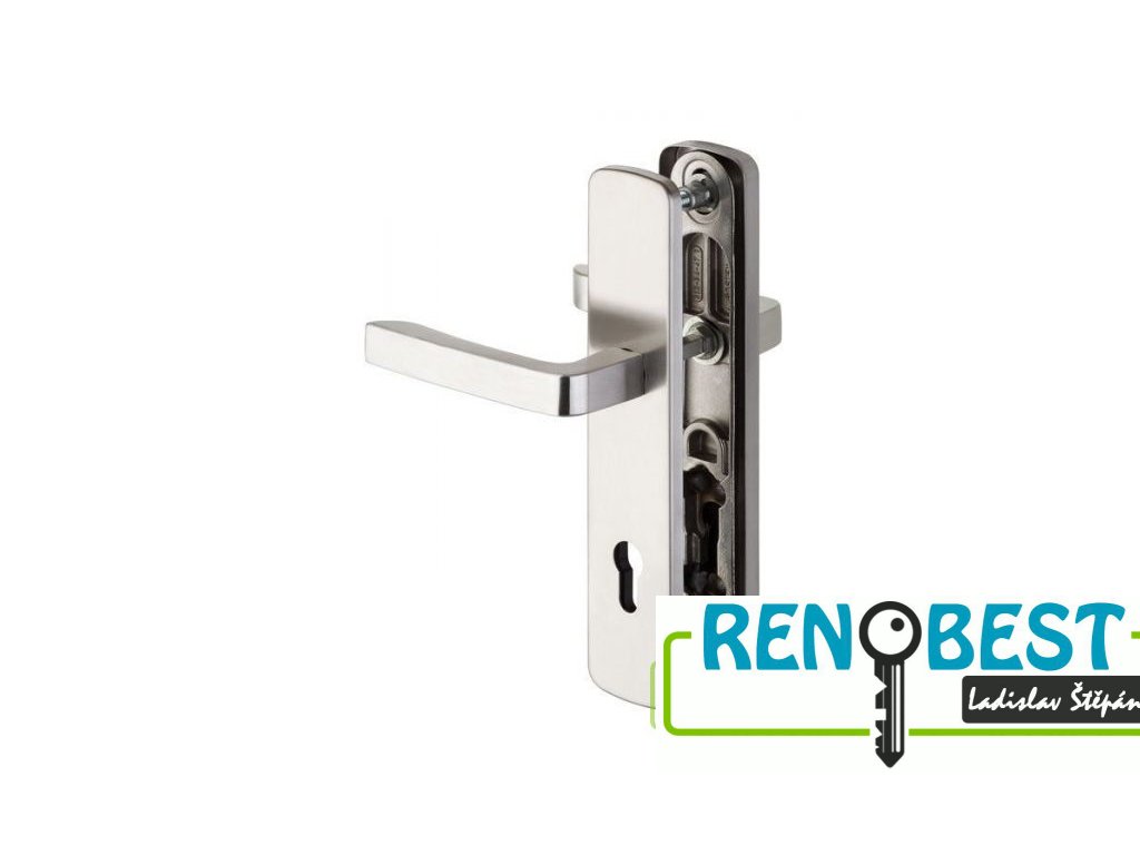 - bez cylindrické vložky a je určeno na vstupní dveře otevírané dovnitř i ven, tloušťka dveří 40 - 50 mm, dále po 10 mm až do tloušťky dveří 100 mm je nutné dokoupit prodlužovací sadu na příslušnou tloušťku dveří.
