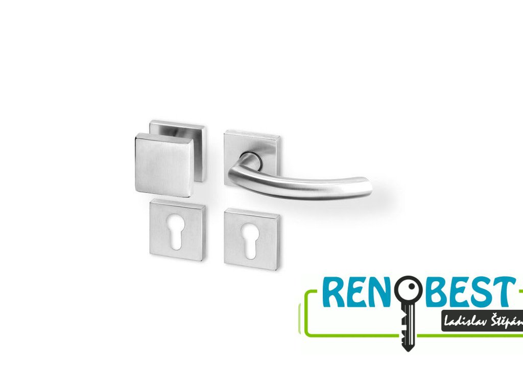 Dveřní kování GINA R HR nerez PK (hranatá rozeta) na BB (dozický klíč) ,PZ (Fab klíč), a WC