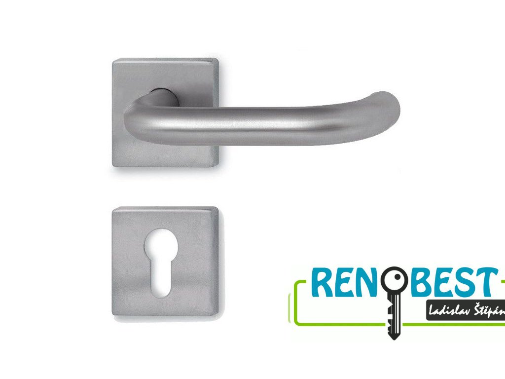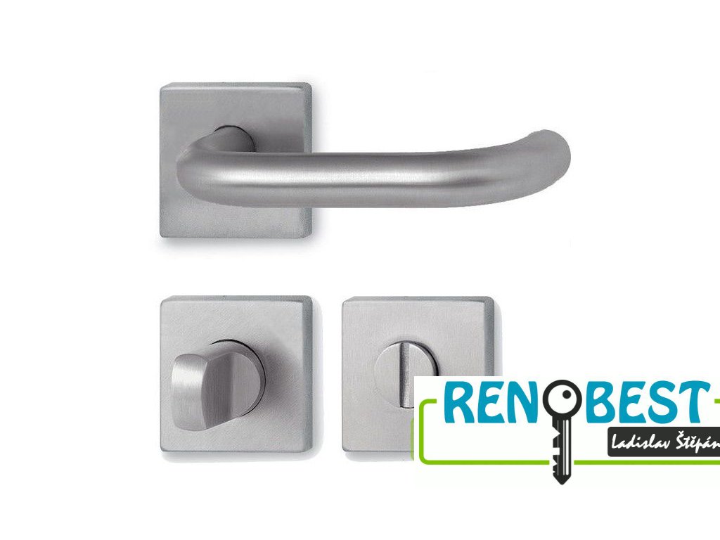 Toto dveřní kování je dostupné v provedení s hranatou rozetou pro obyčejný klíč (BB), cylindrickou vložku (PZ), nebo s uzamykací páčkou WC.
