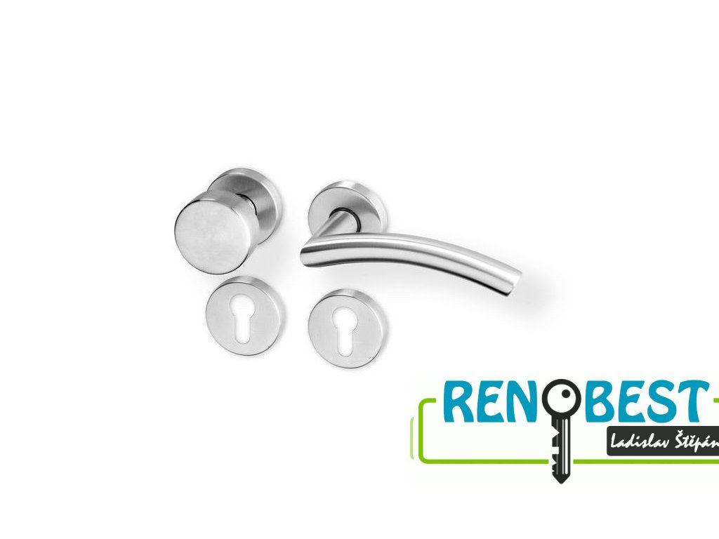 Dveřní kování PIPA R nerez PK (kulatá rozeta) na BB (dozický klíč) ,PZ (Fab klíč), a WC