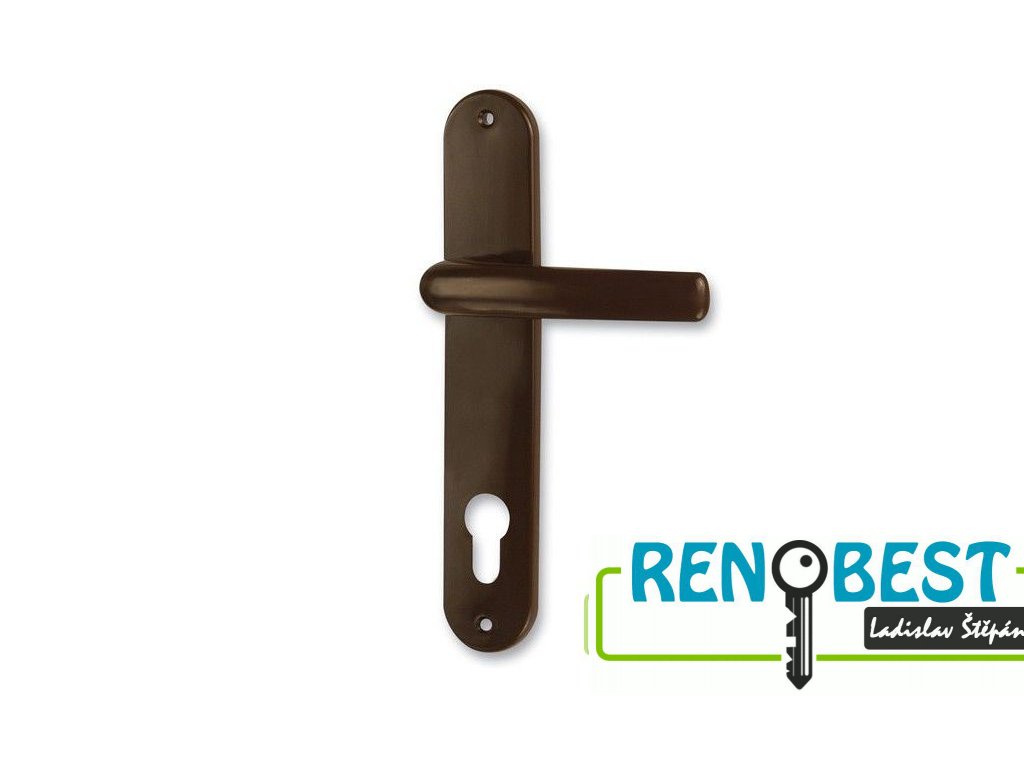 - Dveřní klika se štítkem s roztečí 90 mm KLASIK K 01 s moderním a nadčasovým designem vhodná k instalaci spíše do interiéru, lze ji však také použít v exteriéru.