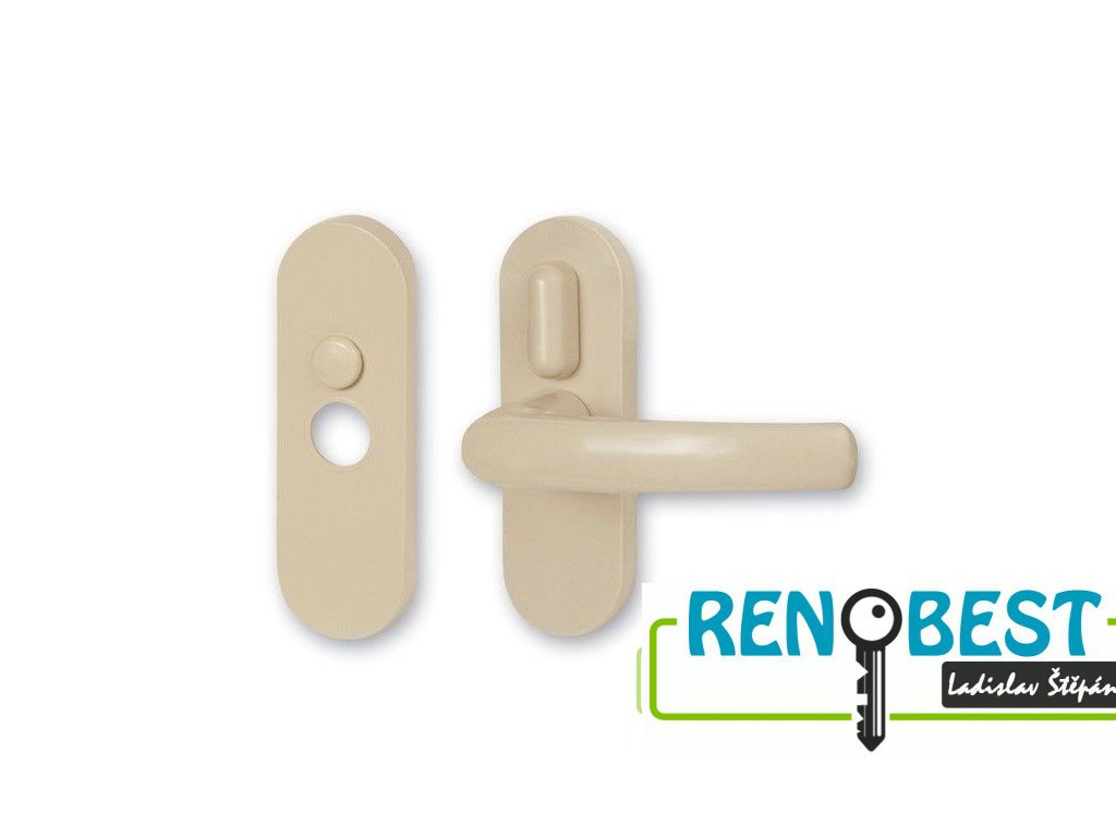 - Mezipokojová dveřní klika s oválným štítkem s uzamykací páčkou KLASIK K 06 s moderním a nadčasovým designem vhodná k instalaci do interiéru.