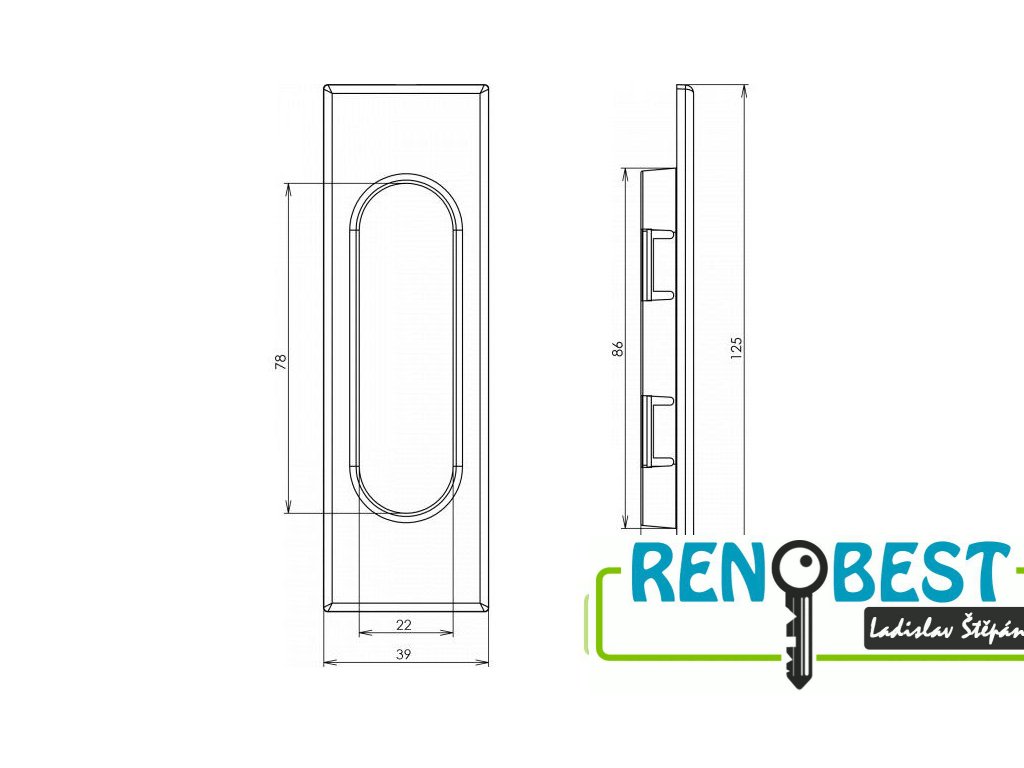 - Hranatá mušle na posuvné dveře je vhodná k instalaci na posuvné dveře ve stavebním pouzdře či posuvné dveře u skříní