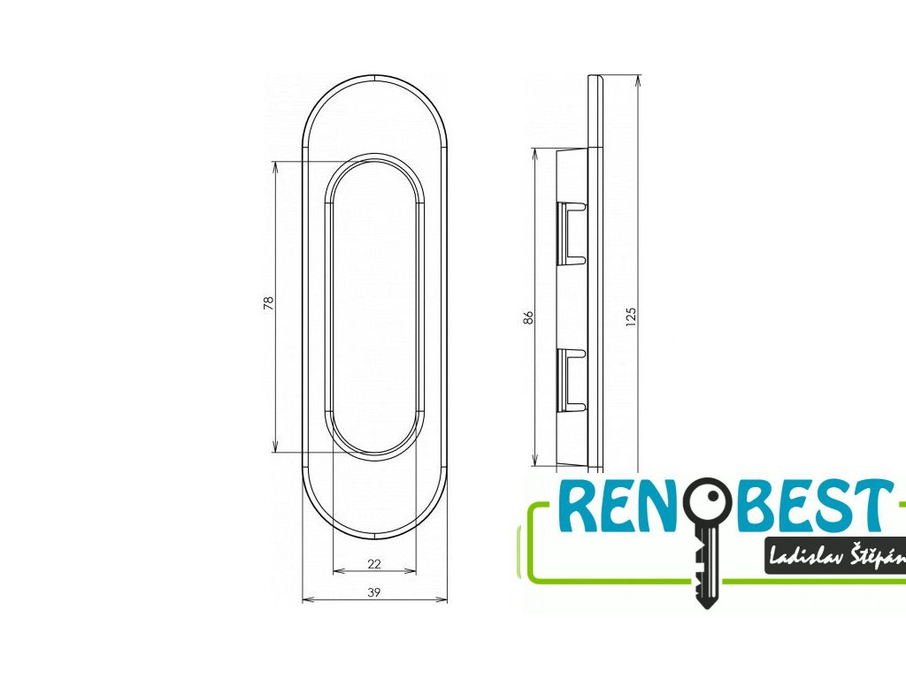 - Oválná mušle na posuvné dveře je vhodná k instalaci na posuvné dveře ve stavebním pouzdře či posuvné dveře u skříní