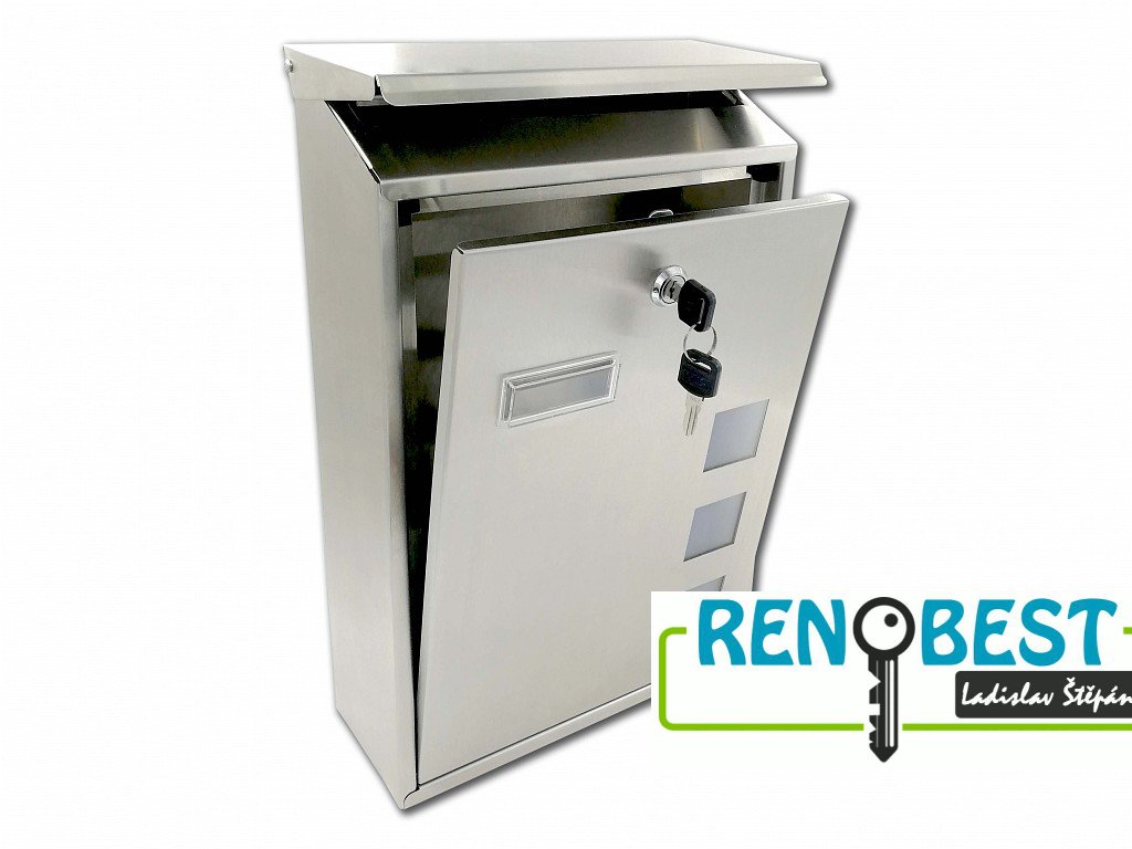 Schránka pohodlně pojme obálku o velikost A4. Dopisní vhoz je umístěný na vrchní straně a krytý těsnou sklapkou, aby korespondence byla v bezpečí a chráněna vůči vnějším povětrnostním vlivům. Samozřejmostí je plastové okénko pro jmenovku ve dvířkách. Na těch se nachází také tři praktické poloprůhledné otvory pro vizuální kontrolu, zda se ve schránce nachází korespondence.