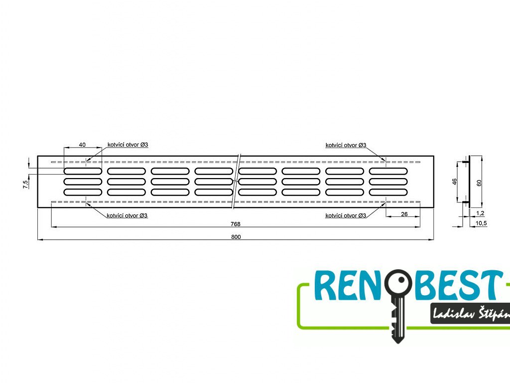 Větrací mřížka 60/800mm ČERNÁ MAT