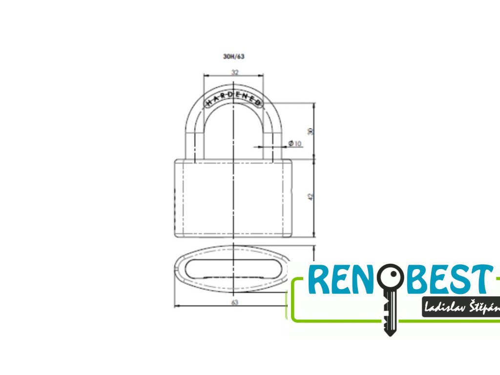 - třmen zámku má zvýšenou odolnost proti řezání, stříhání, úderům kladiva
