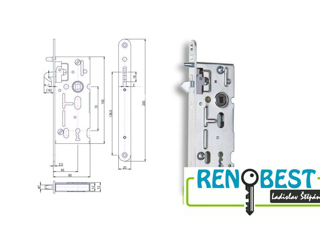 Zámek zadlabací K 106, rozteč 72 mm, zádlab 60 mm :