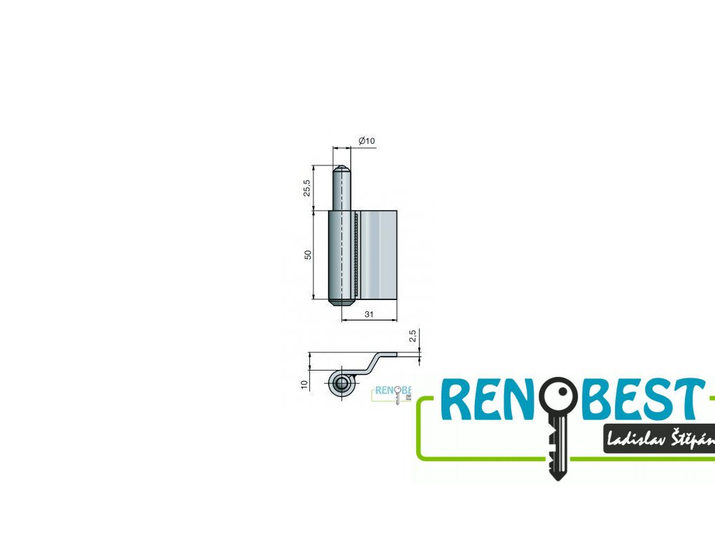 - Spodní díl dveřního závěsu určen pro ocelové zárubně.