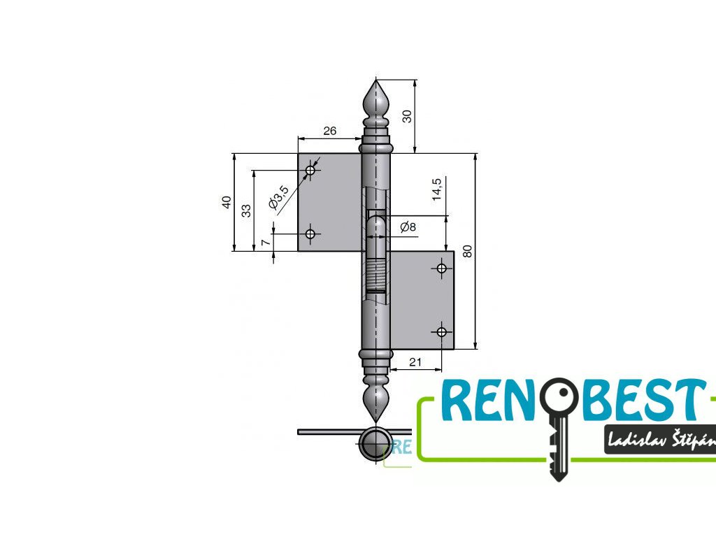 - Používá se jako nosný závěs pro otočné spojení okenního křídla s rámem.