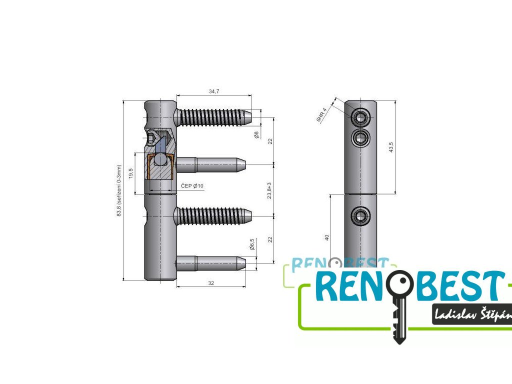 - Závěs ( pant ) seřiditelný ve třech směrech ( okenní křídlo, rám a výška)