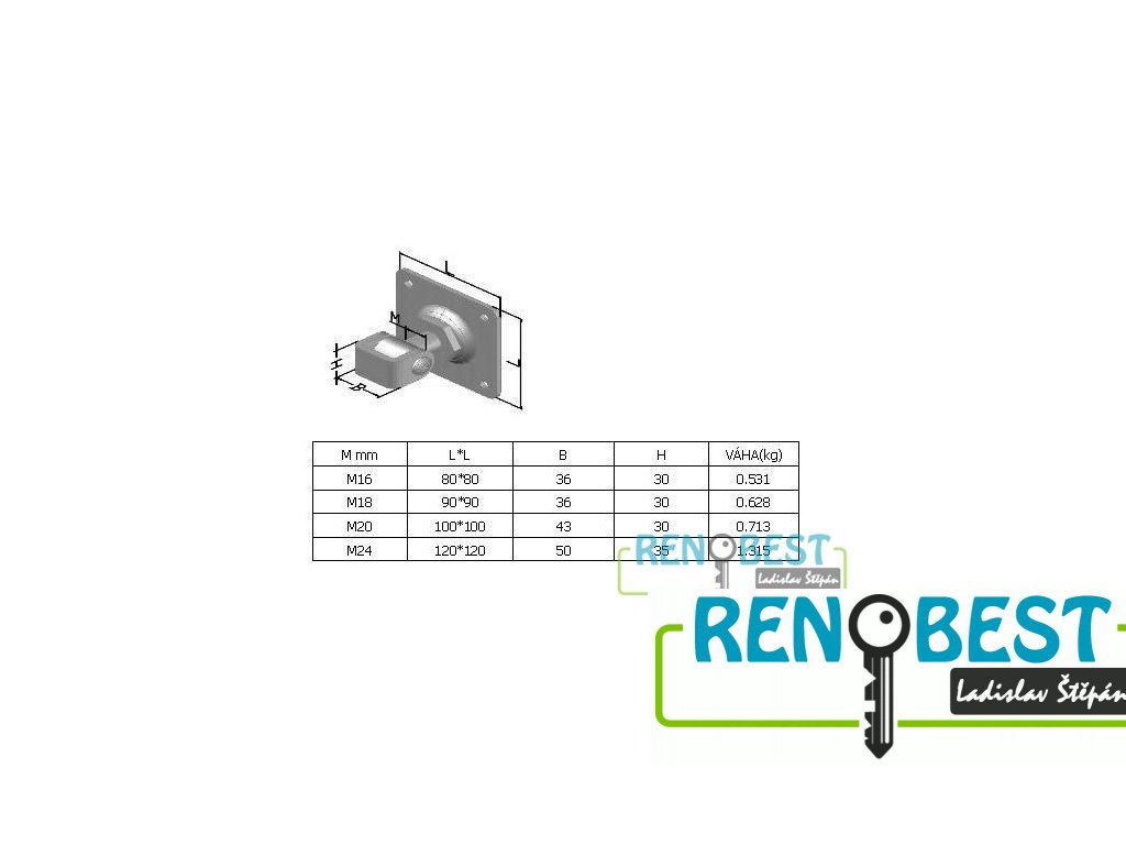 Závěs seřizovací plotna M24 120x120mm nosnost 75kg