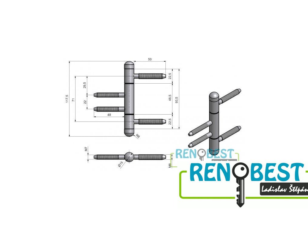 - Třídílný závěs pro dřevěné dveře a obložkovou zárubeň.