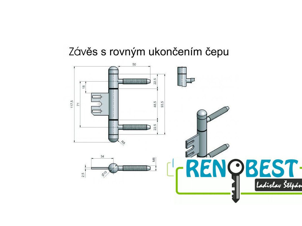 Závěs třídílný 15x90 M8 OZ34 TUKAN